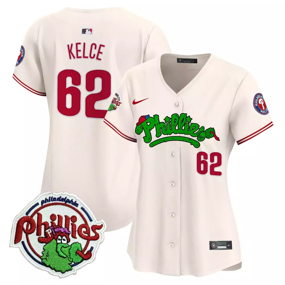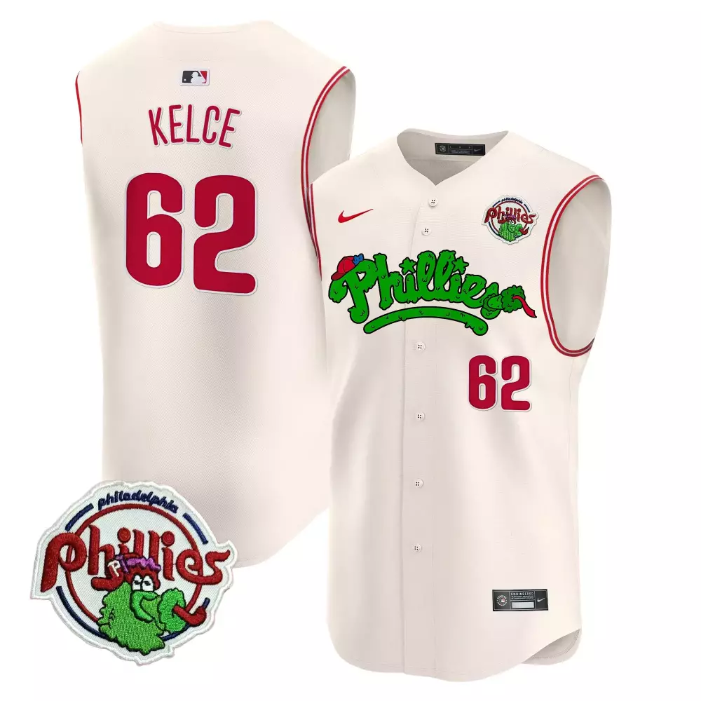 Kelce 62 Philadelphia Phillies Cream Stitched Jersey | 2024 Spring Training Limited Edition | Fan Gear for Men, Women & Youth;Kelce 62 Philadelphia Phillies Cream Stitched Jersey | 2024 Spring Training Name Patch | Fan Gear for Men, Women & Youth;Kelce 62 Philadelphia Phillies Cream Stitched Name Patch Jersey | Women’s Style 2023 | Fan Gear for All Ages;Kelce 62 Philadelphia Phillies Cream Stitched Sleeveless Jersey | 2023 Name Patch | Fan Gear for Men, Women & Youth;Kelce 62 Philadelphia Phillies Eagles Stitched Jersey | Green Red Year Patch | Fan Gear for Men, Women & Youth